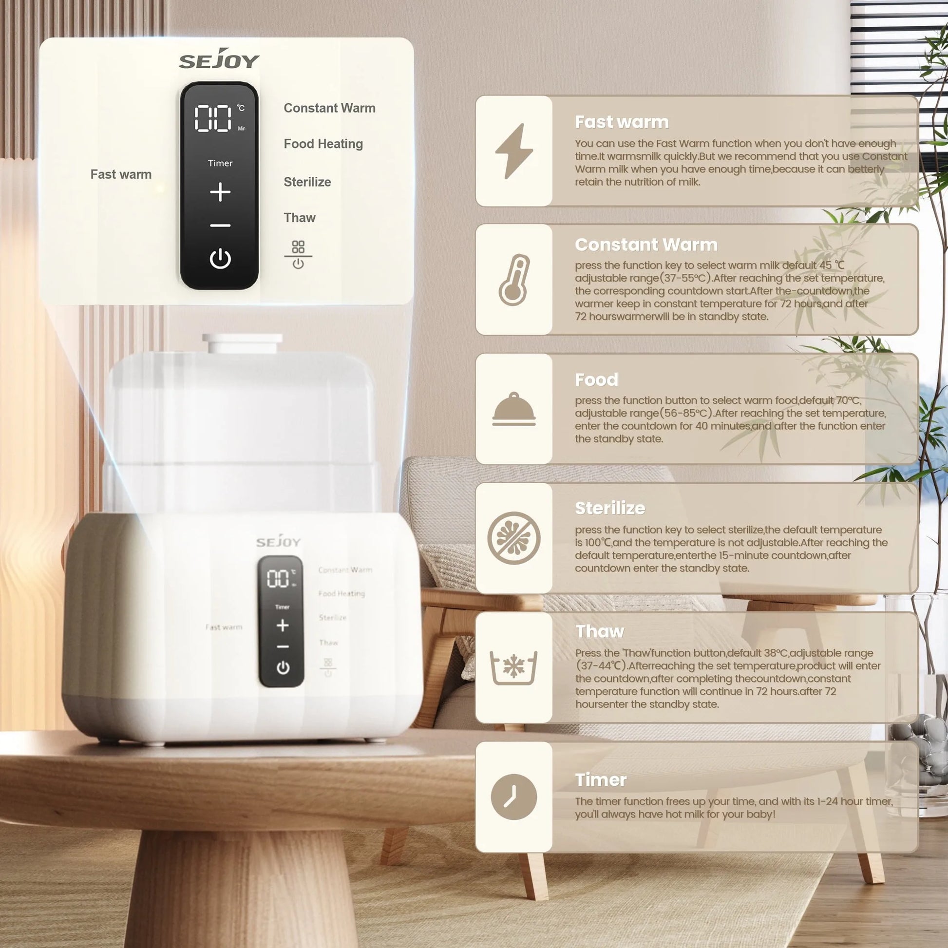 Functions: Bottle warming, sterilization, defrosting, food heating, constant warming